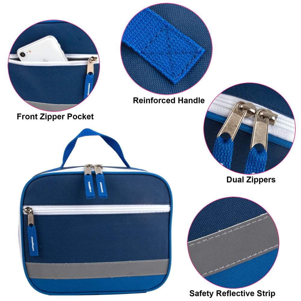 Add a touch of style to your lunch routine with the Fridge Pak Reflective Strap Lunch Bag. Comes in three elegant colors, this lunch bag features a front zippered accessory pocket and a reflective strap for added safety. Perfect for carrying your lunch securely and in style.