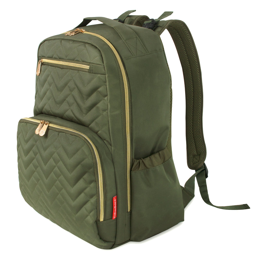 Introducing the Fisher-Price Signature Morgan Backpack Diaper Bag in luxurious Olive greeb. With its spacious compartments and stylish design, this bag is perfect for fashion-forward parents on-the-go. Crafted with premium materials, it offers both practicality and sophistication. Keep your baby essentials organized and travel in style with this elegant and exclusive diaper bag.