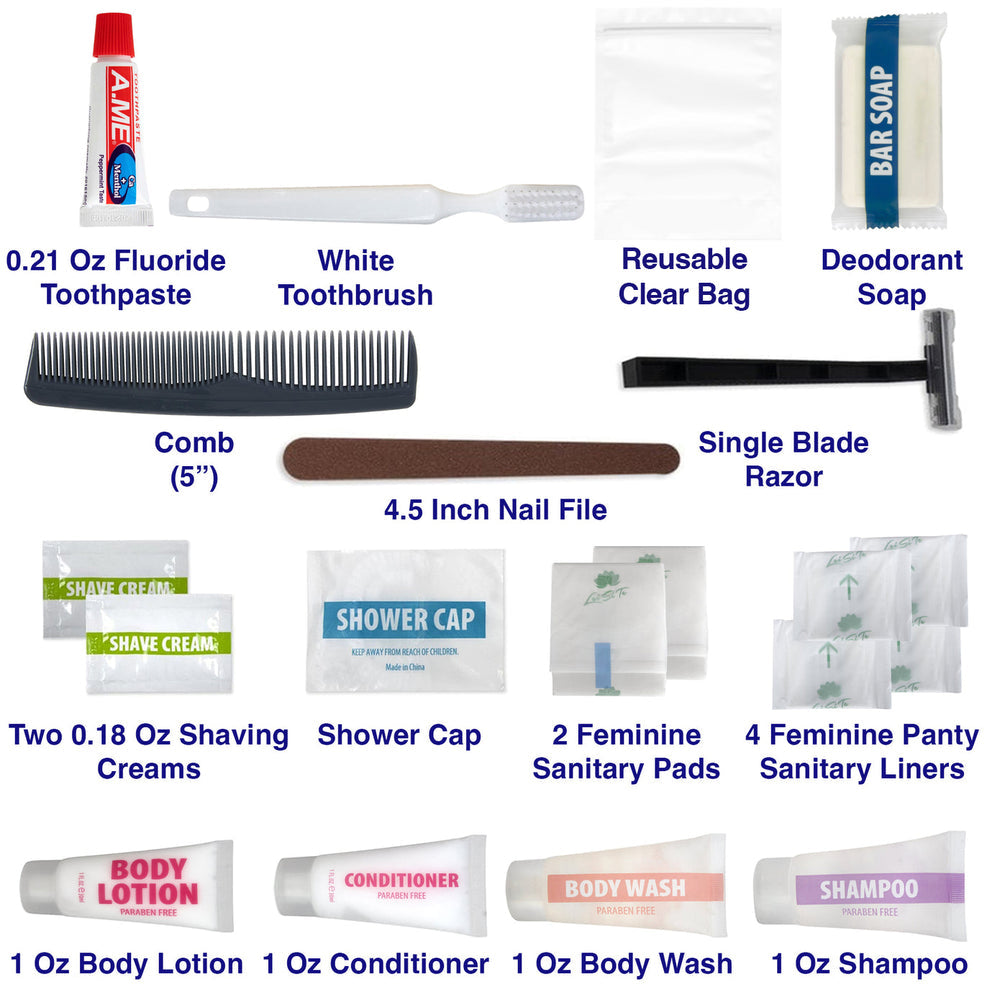 Each 20-pc Deluxe Feminine Hygiene Kit is individually packed for easy dispersal.