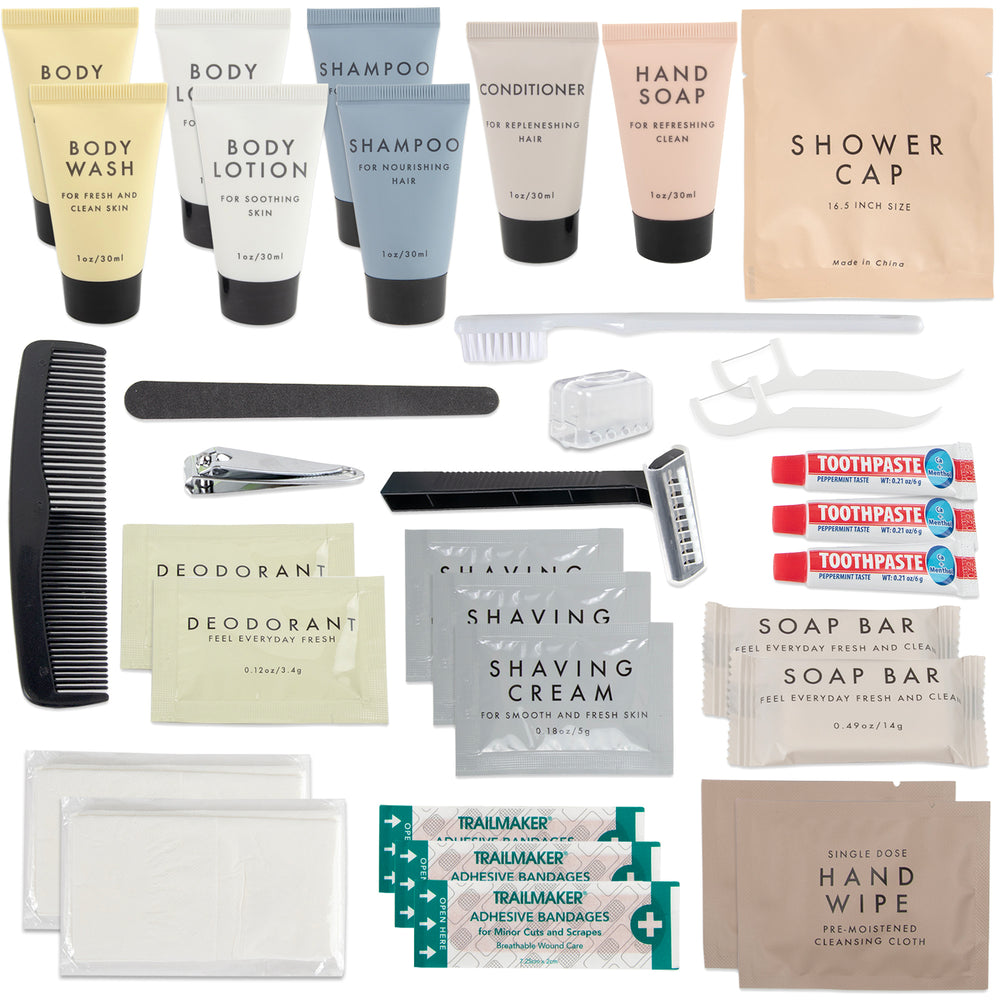 Get ready to indulge in the ultimate hygiene experience with our Premium 35 Piece Hygiene Kit! From refreshing shampoo and invigorating body wash, to essential toiletries like to essential toiletries like toothpaste, toothbrush, deodorant and more, this kit has everything you need to stay fresh and clean on the go. Pack it in your bag or keep it handy for any adventure!