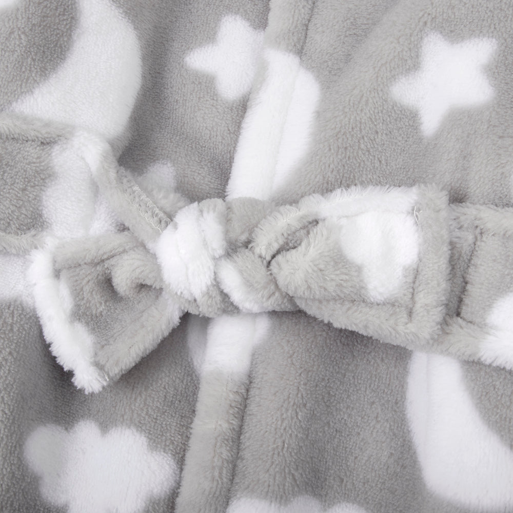 This Cloudy Sky Toddler Robe is a perfect fit for a toddler's wardrobe. With a soft and cozy fabric, this piece is sure to provide warmth and style for your little one. Add a touch of comfort to your child's wardrobe with this stylish and lightweight robe.
