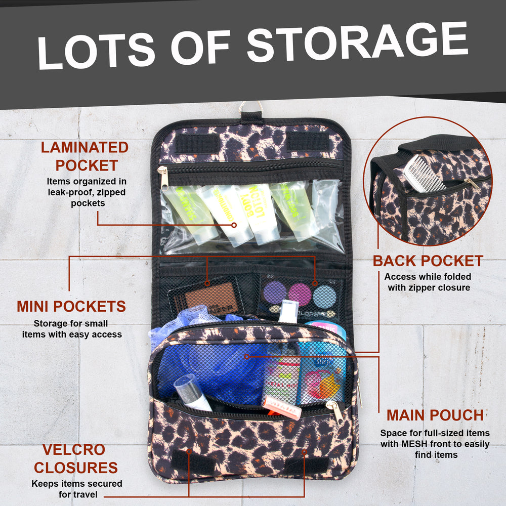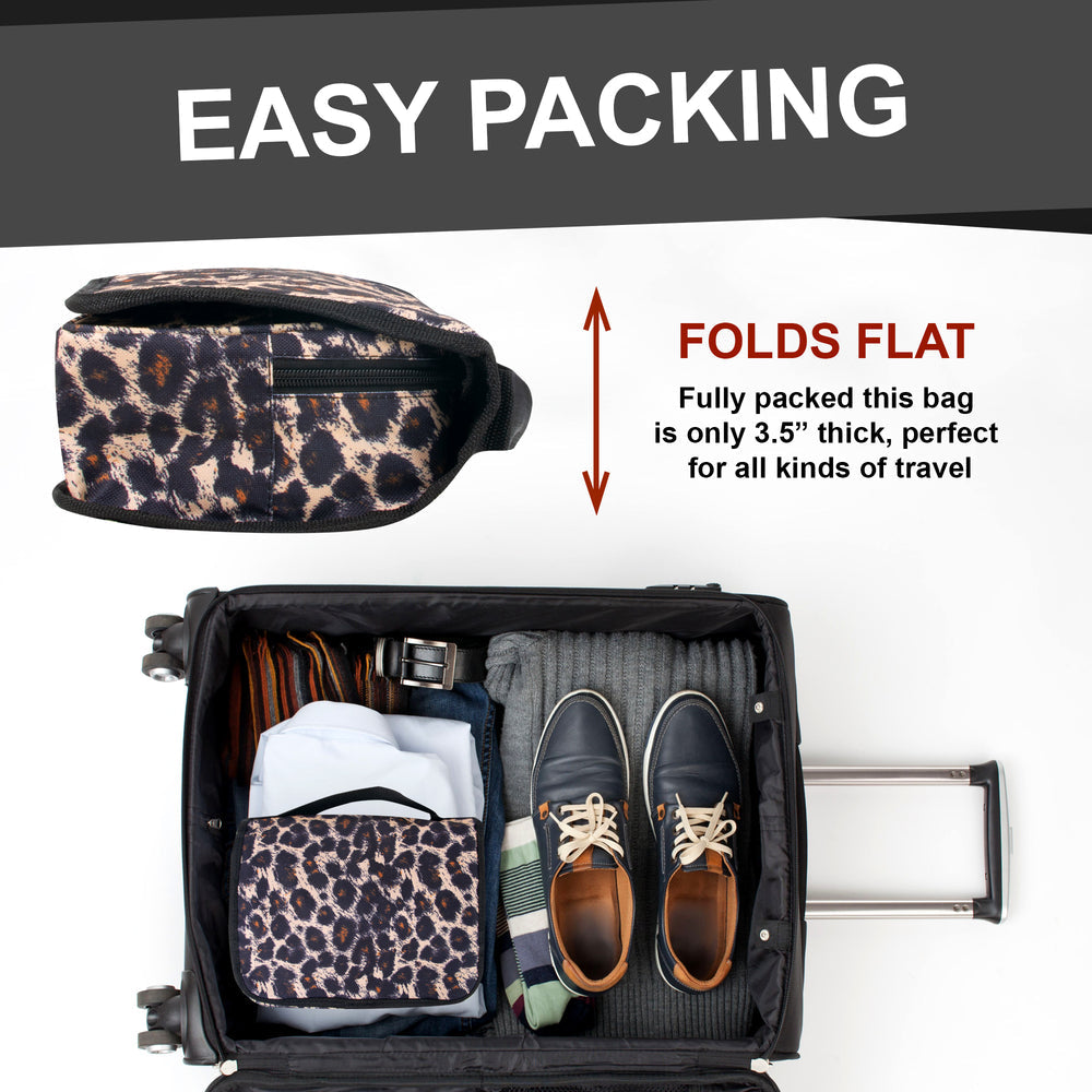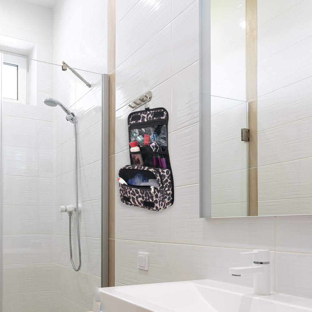 The Wholesale Travel Hanging Toiletry Bag in Leopard print is designed to efficiently store all your essentials. Introducing our Wholesale Travel Hanging Toiletry Bag in a classic Navy Stripe design. Keep your toiletries organized and easily accessible while traveling. With multiple compartments and a convenient hanging hook, it's perfect for any trip. Durable and stylish, it's a must-have for all travelers.